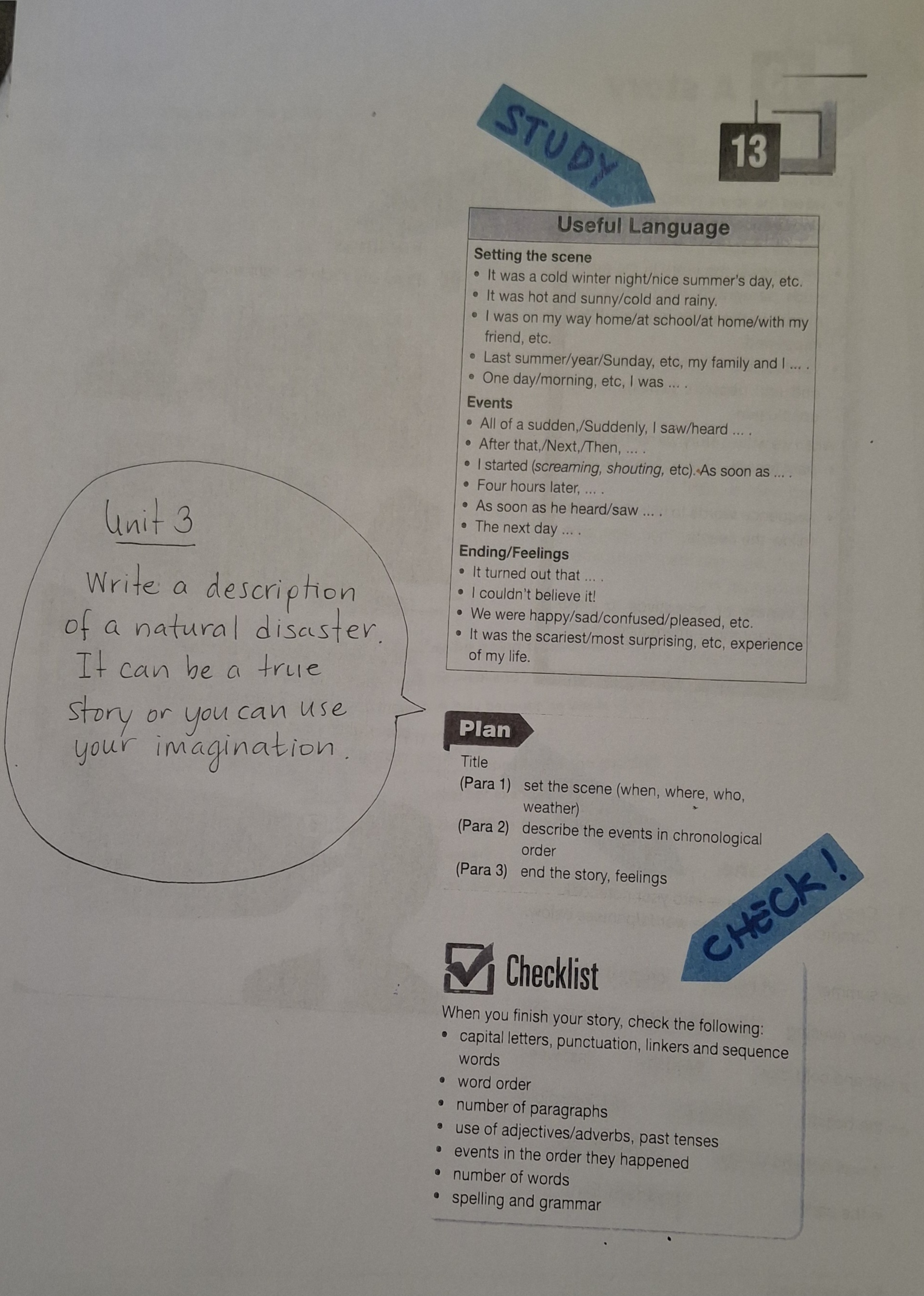Workbook pg 25 (vocabulary) and pg 26 (grammar) and pg 27 (writing an email) HELP: Student: pg 51 (writing an email)