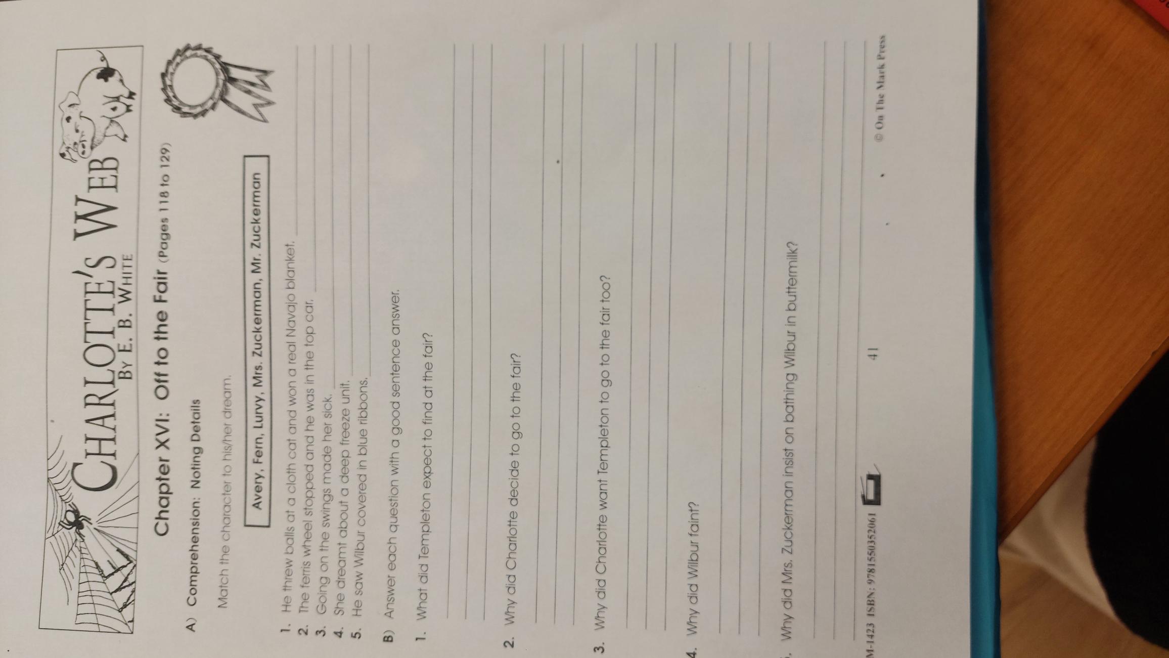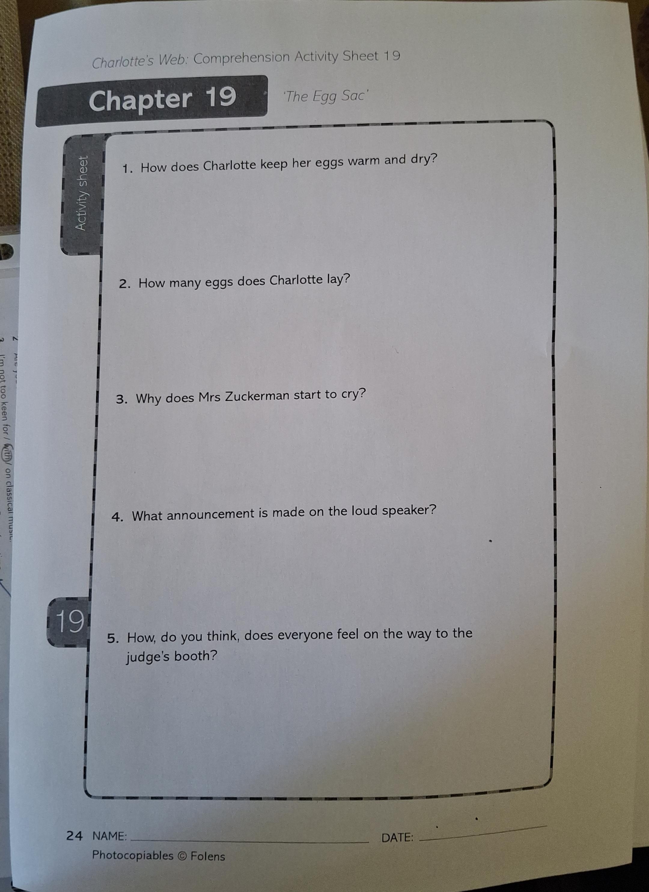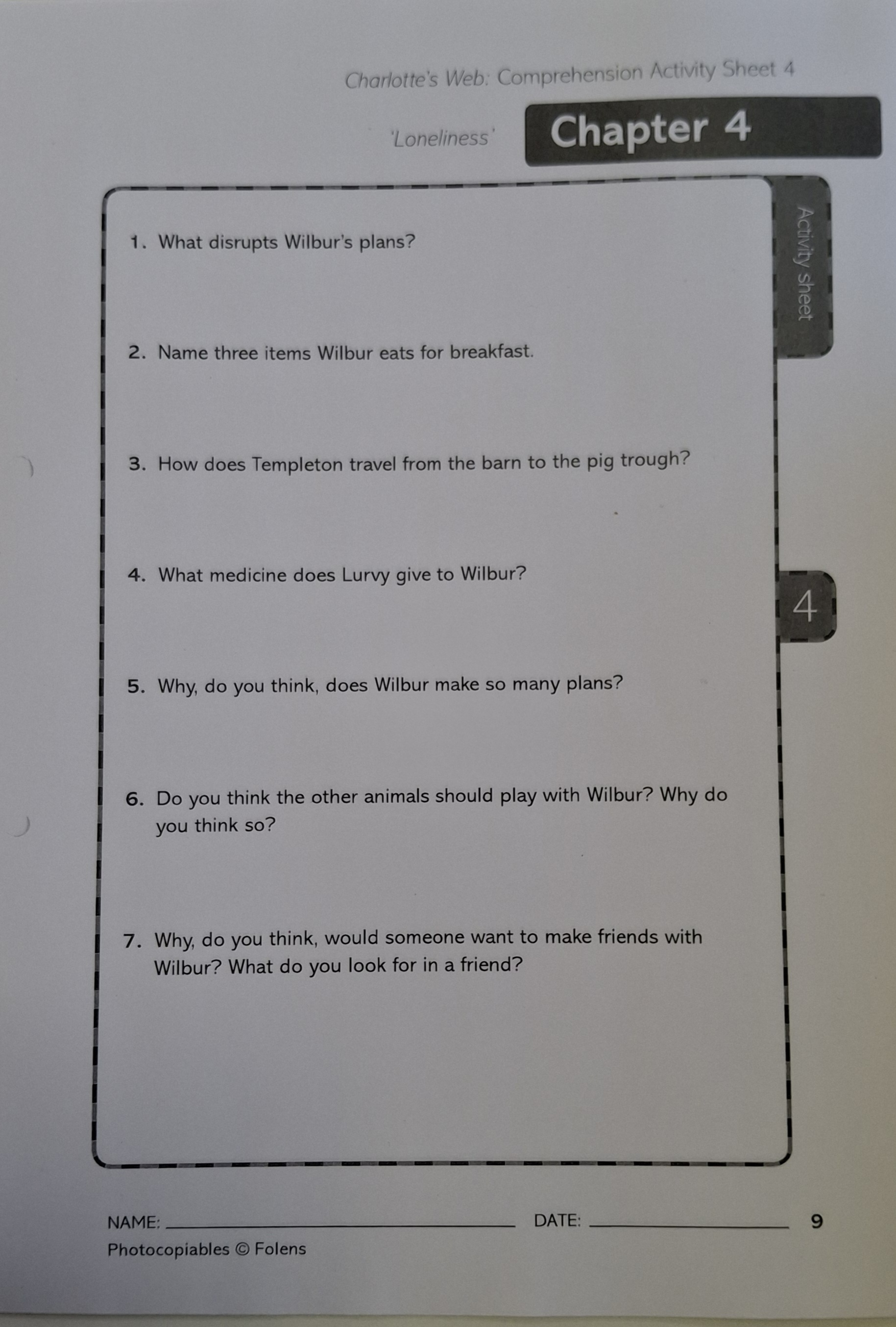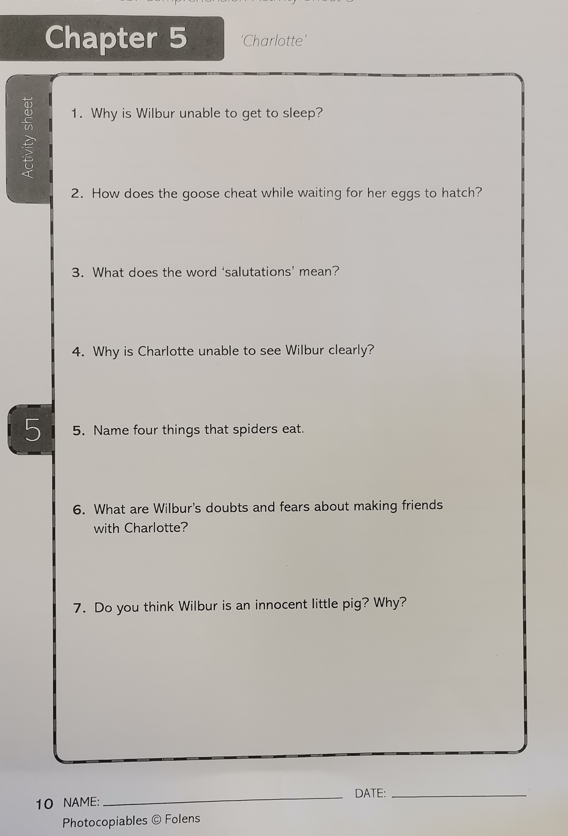 Homework - Read chapter 1 and 2 of Charlotte's web at home again and write a short description of Wilbur the pig in your notebook.