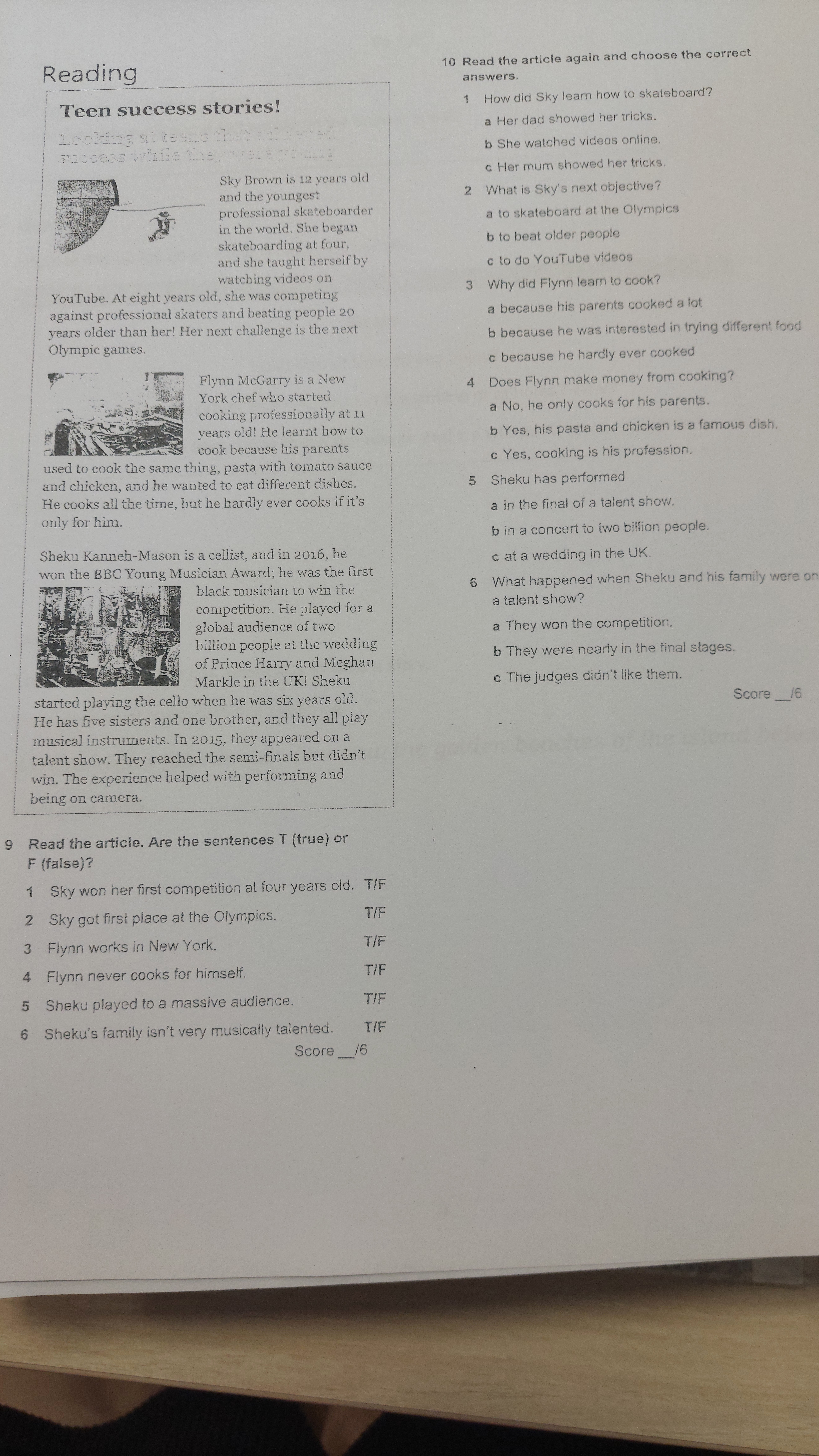 Homework correction / Grammar quiz on unit 7 and writing(article)