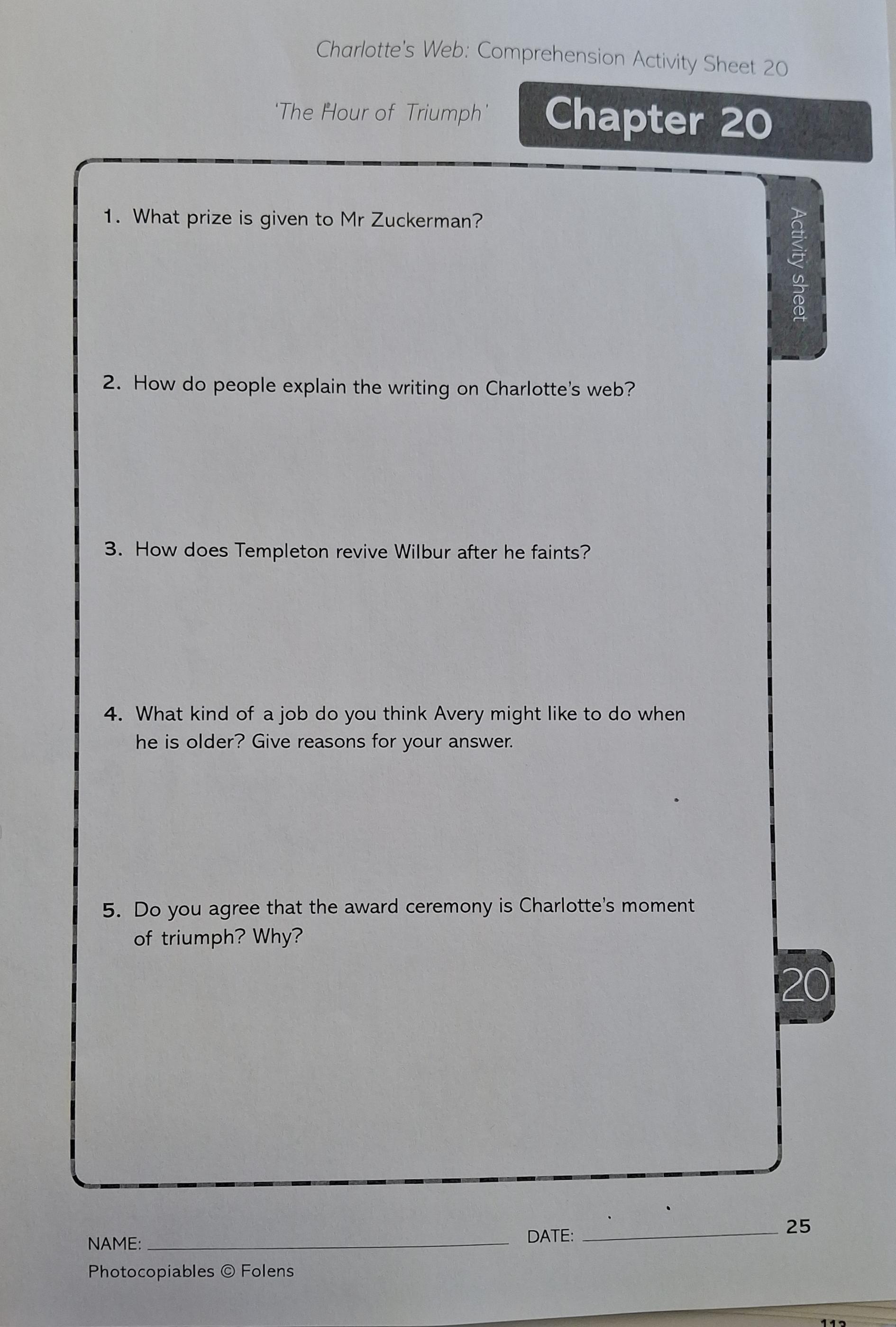 Charlotte's web chapter 7/ HALLOWEEN activities